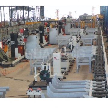 该生产线为管道预制行业前瞻性设计规划,可根据用户产能需求量身定制,各工作站之间通过高效的物流系统进行输送链接,减少行车占用排队,实现从管子上料、定长下料开坡口、组对、点焊、自动打底焊、填充盖面的一系列工序,大幅度提高管道预制的质量和效率;